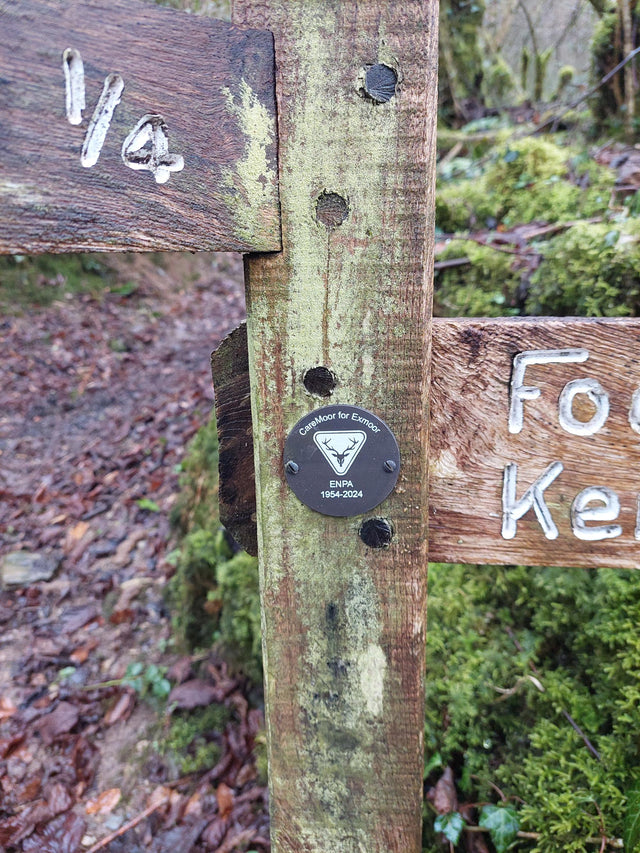 Each sponsored fingerpost will feature a discreet 50mm (2”) bronze plaque, showcasing the ENPA logo and CareMoor for Exmoor branding. The plaque allows for two lines of text, creating a unique dedication.  You can see an example here